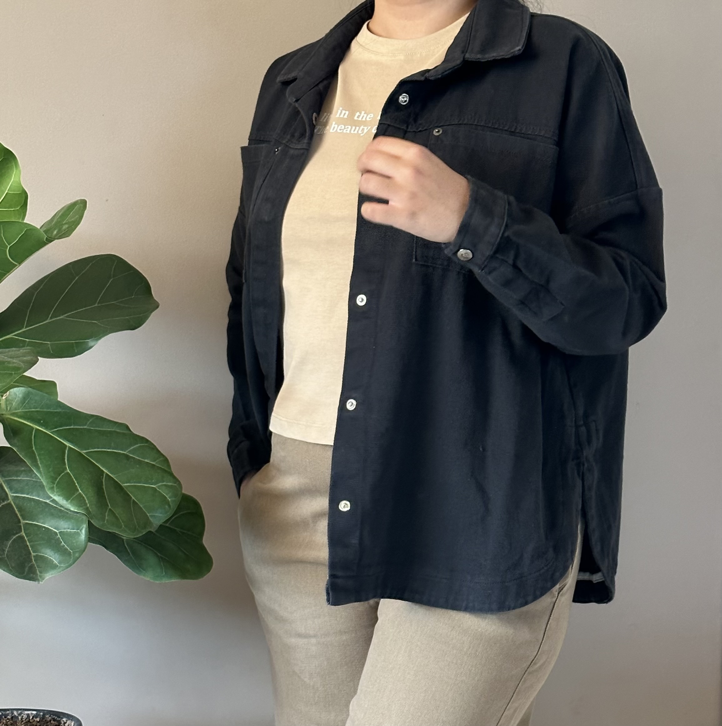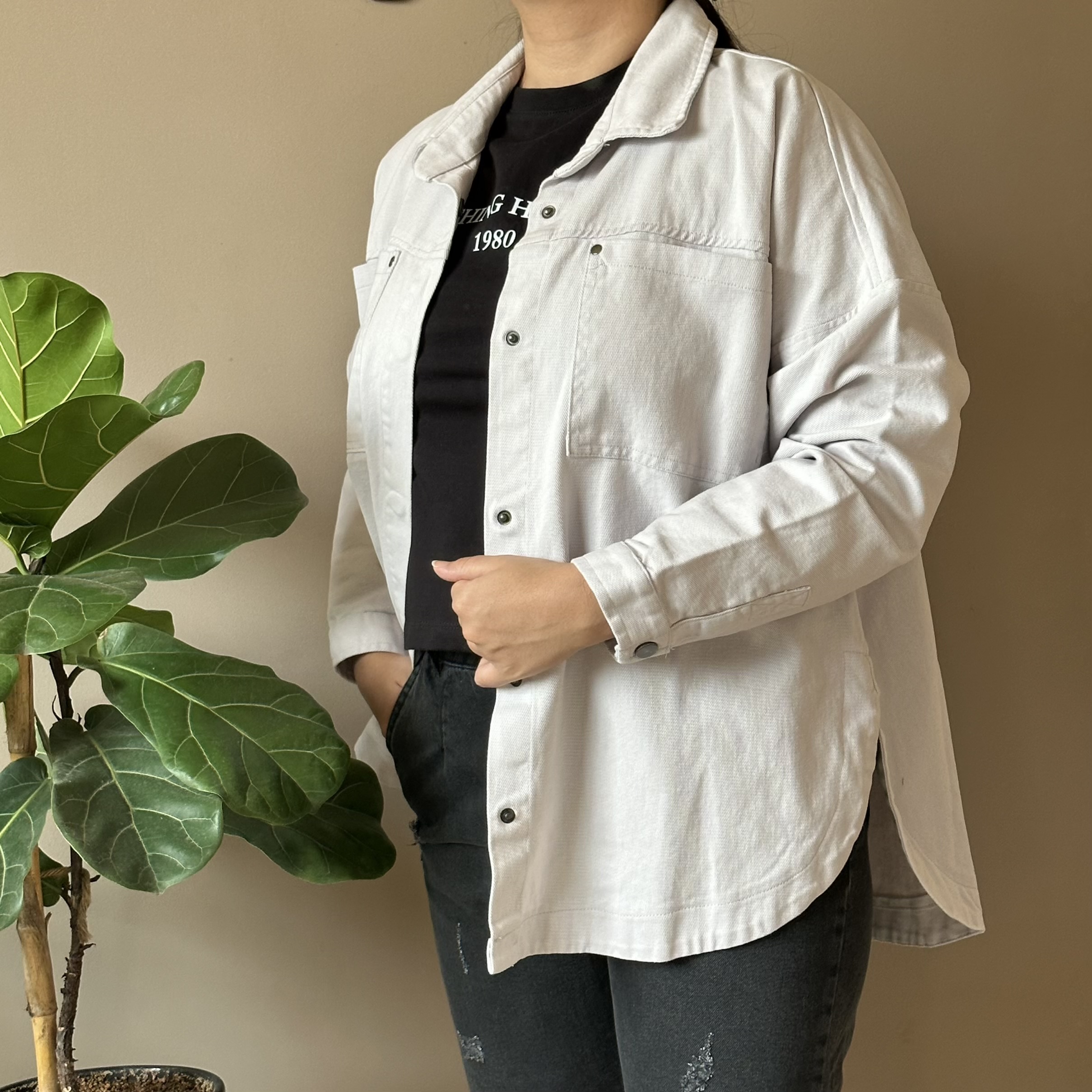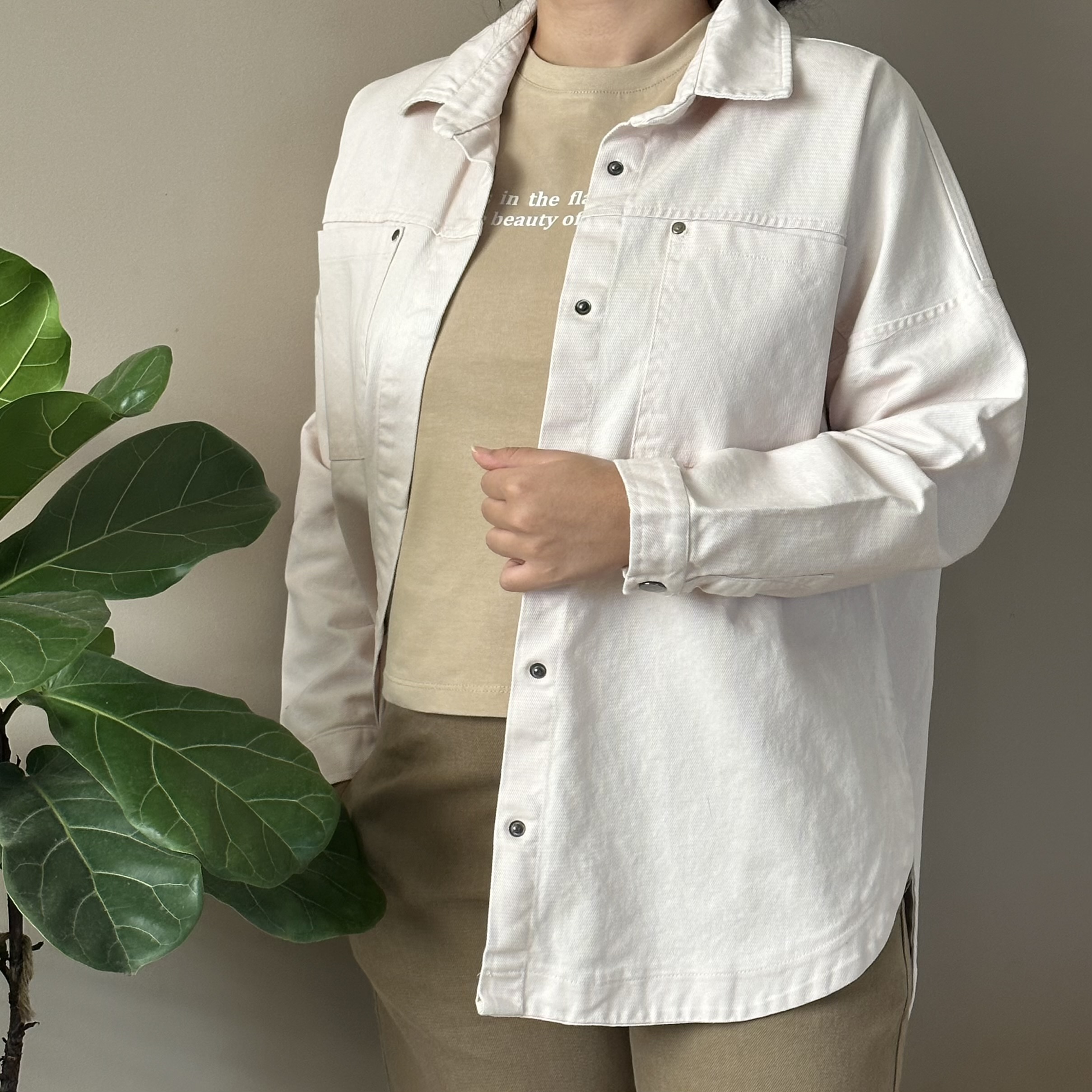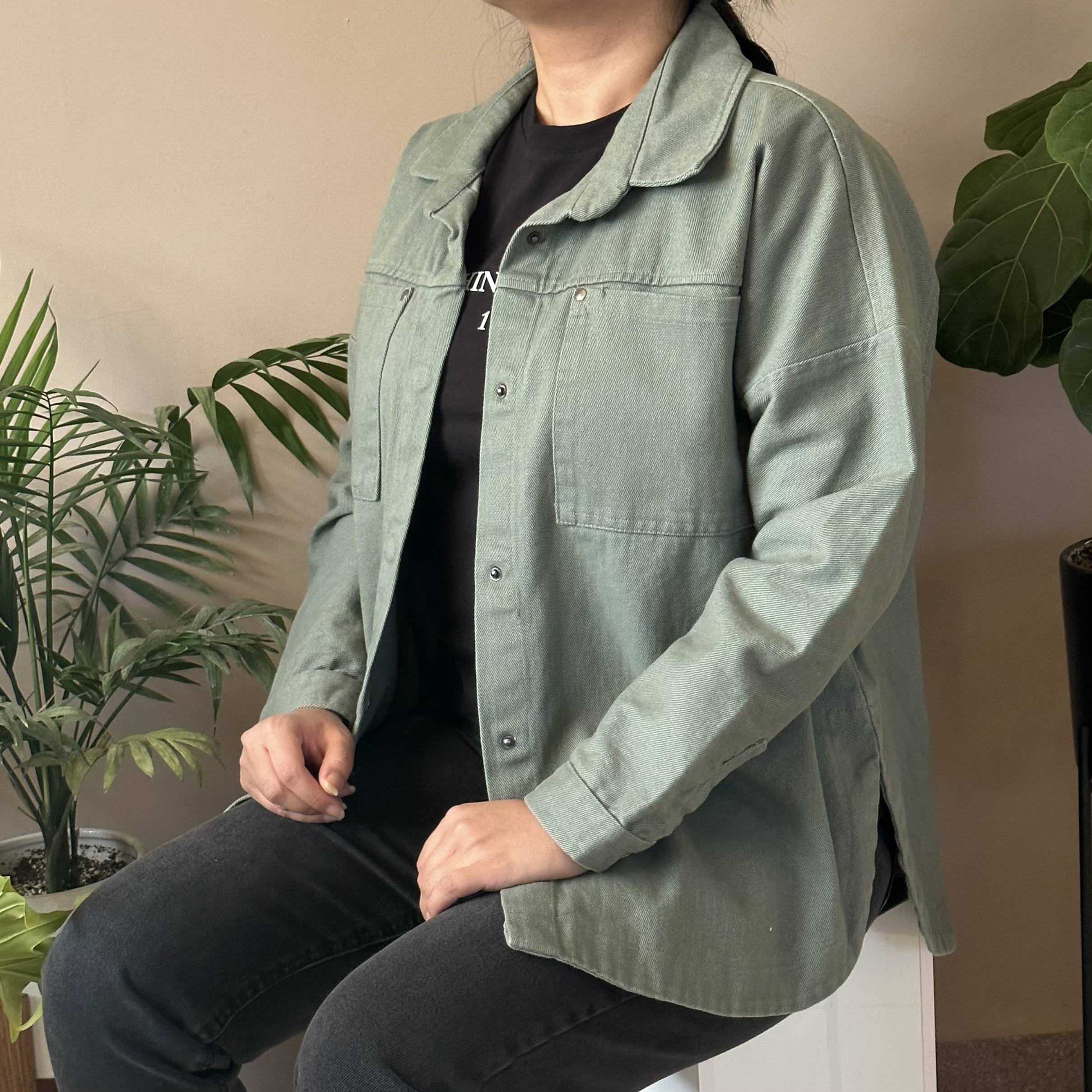 کت زنانه پاییزه جنس کتان مدل آزاد دکمه مخفی