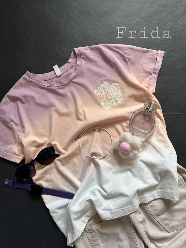 تیشرت دخترانه طرح آمبره آستین پاکتی