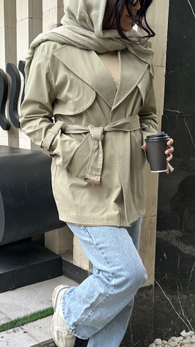 ترنچ کت زنانه کتان زارا مدل کمربندی قد متوسط