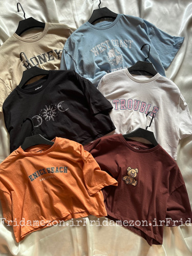 کراپ دخترانه وارداتی مدل اورسایز با طرح نوشته و عروسکی