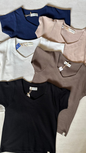 تیشرت زنانه یقههفت برند Violet پارچه بیسکویتی